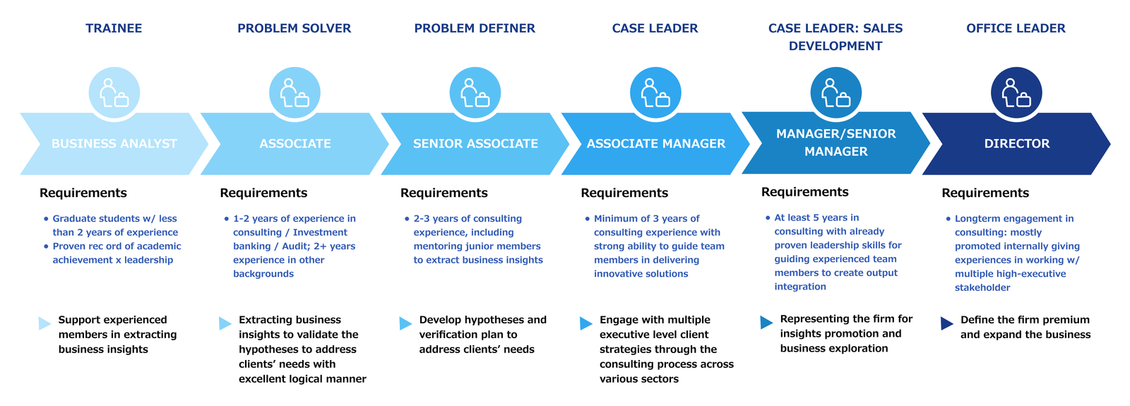 Dream Incubator SEA seeks thoughtful candidates to join our team, welcoming individuals across various levels of experience. Below, you’ll find guidance on the typical years of experience, scope of work, and expected skill sets for new hires at each level.